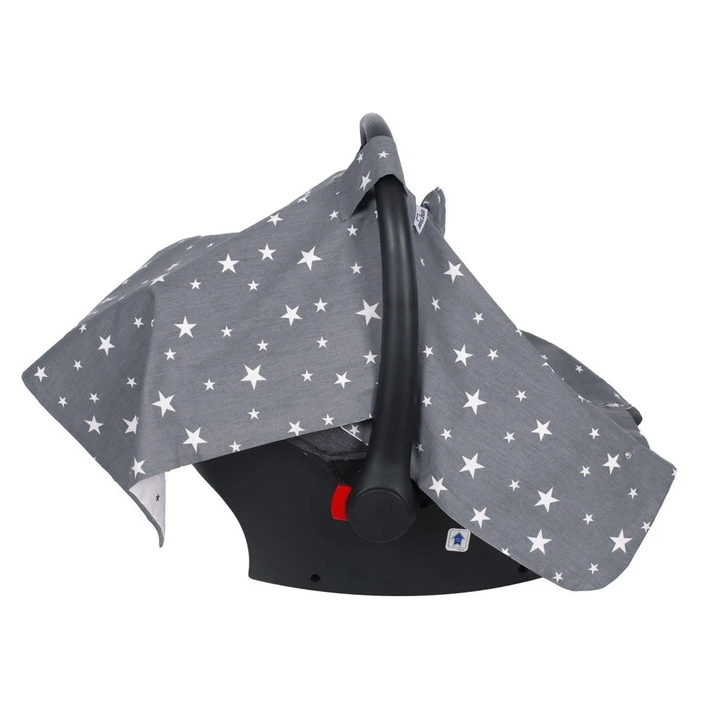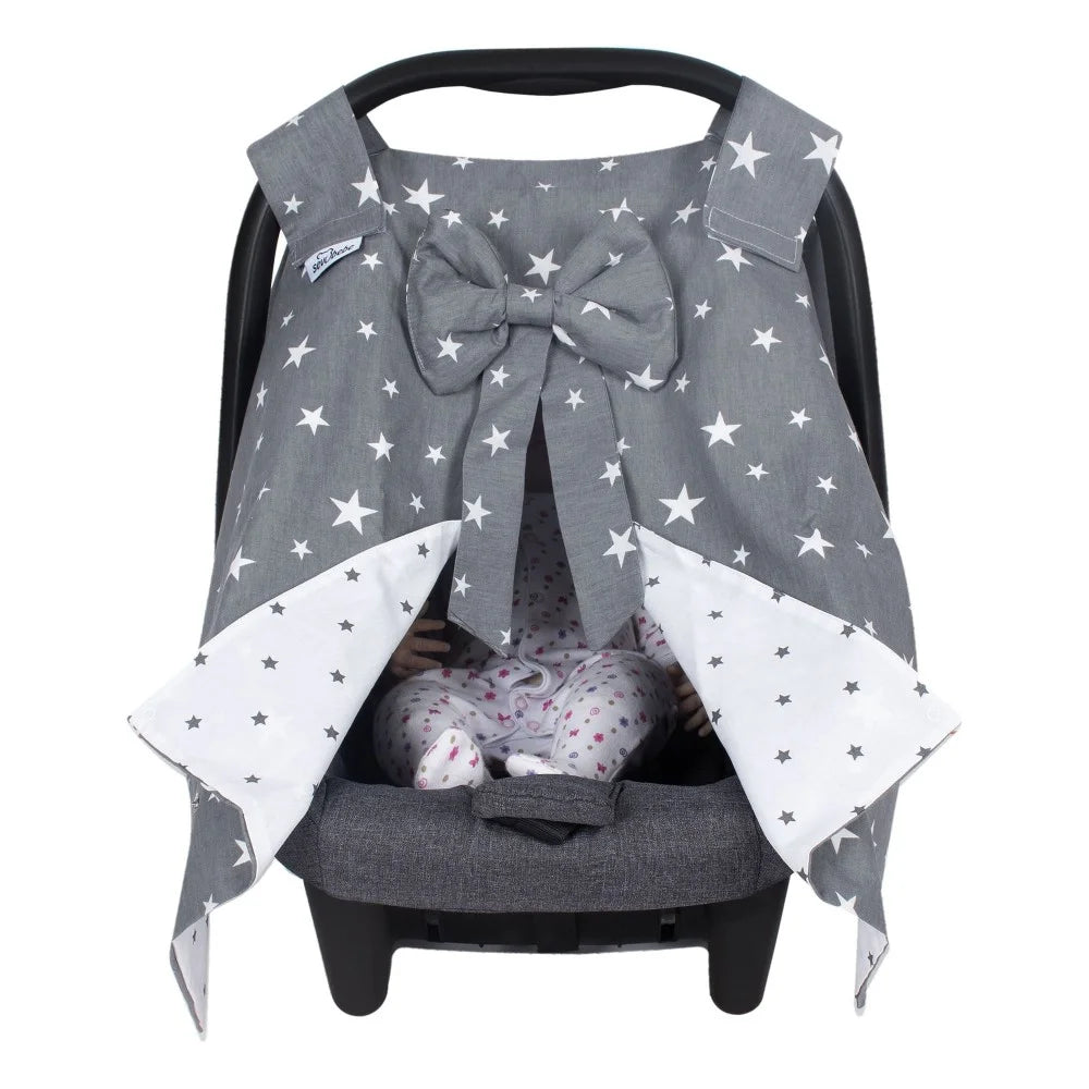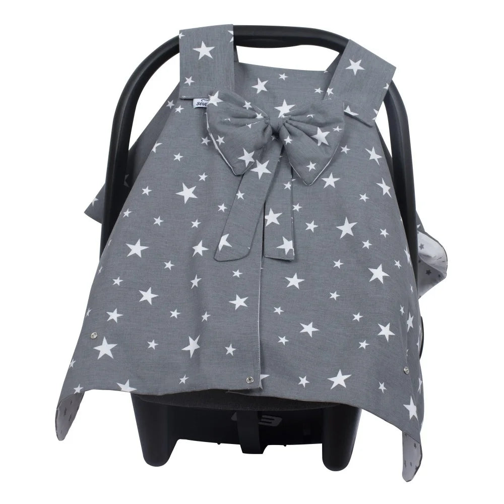 Praktičan i dekorativan prekrivač za autosjedalicu štiti vašu bebu od sunca i vjetra tokom šetnje ili vožnje.