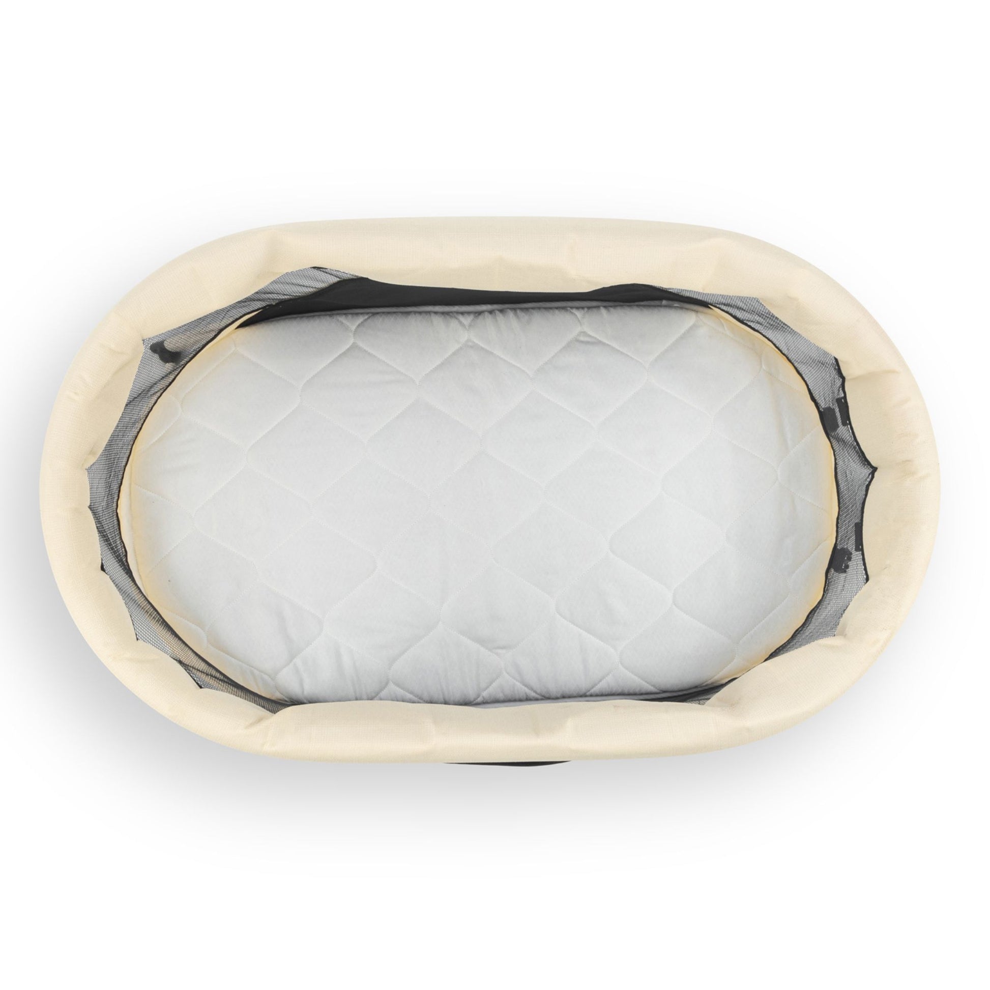 Kolijevka ima mrežaste stranice za bolju ventilaciju i pregled bebe, a navlaka se skida i pere.