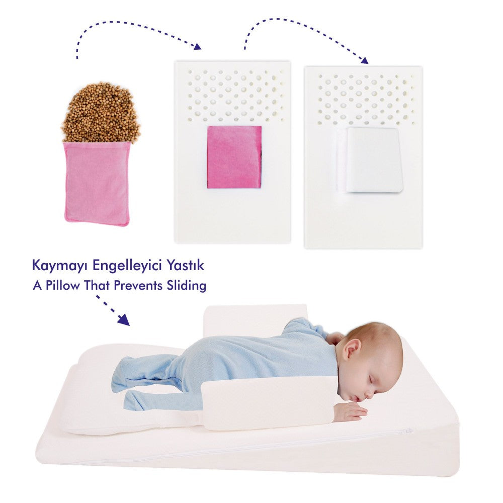 Multifunkcionalna podloga protiv refluksa sa grijnim jastučićem od košpica trešnje pruža bebi miran i udoban san.