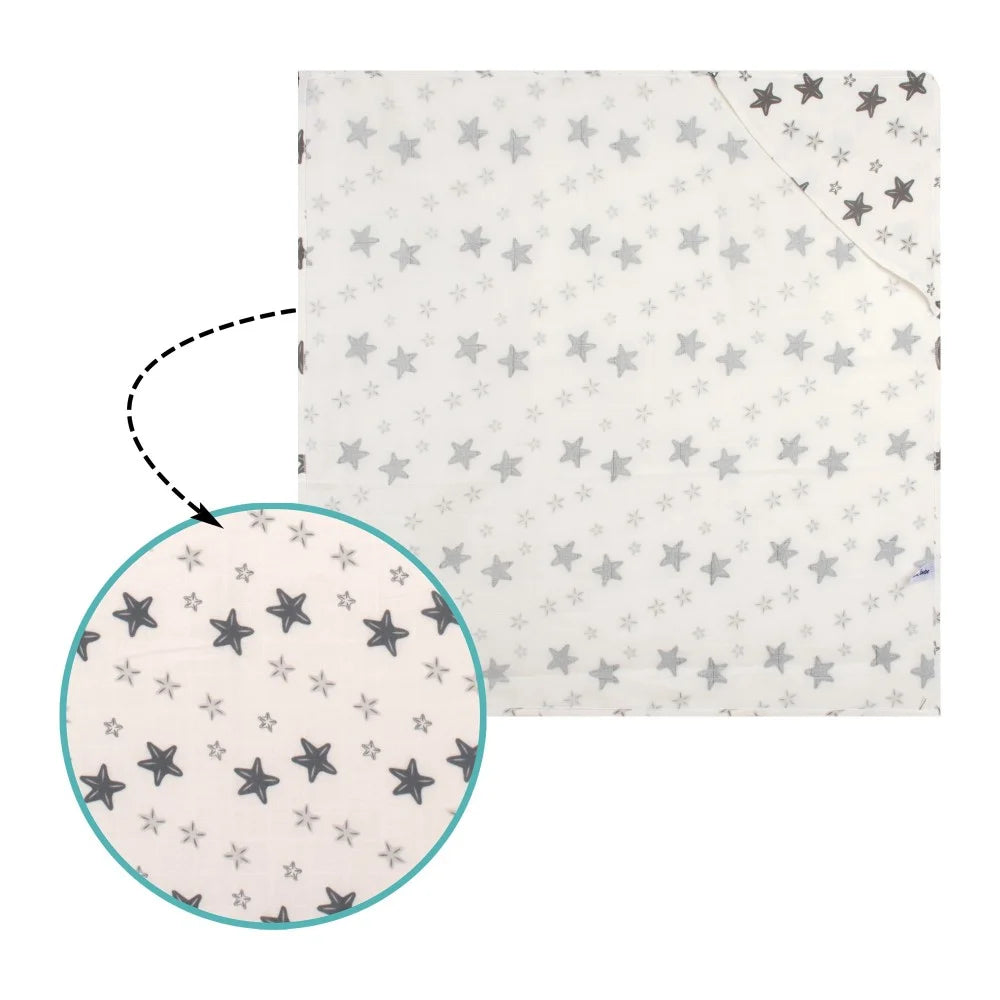Peškir izrađen od 100% organskog muslin pamuka, posebno dizajniran za osjetljivu kožu novorođenčadi.