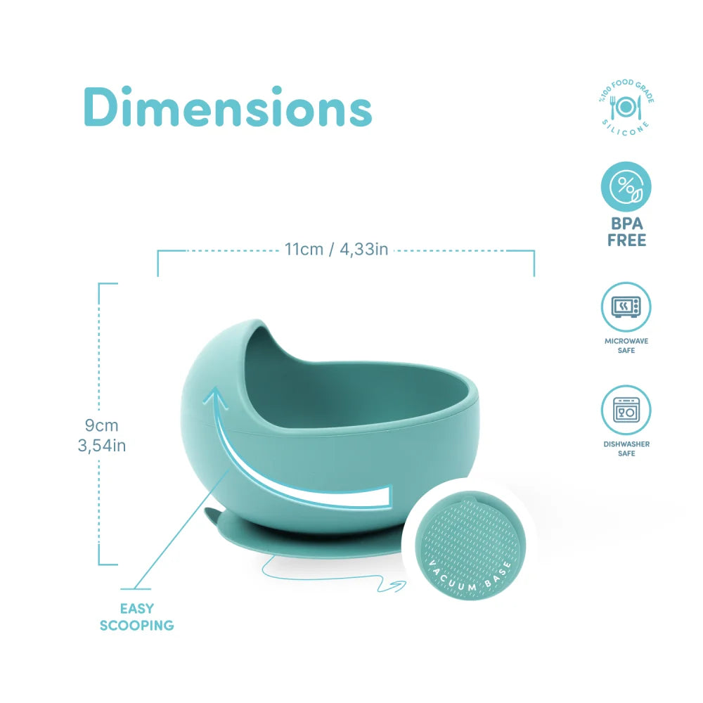 Zahvaljujući vakum bazi, čvrsto se fiksira za ravne površine i sprječava prevrtanje ili prosipanje hrane tokom obroka.