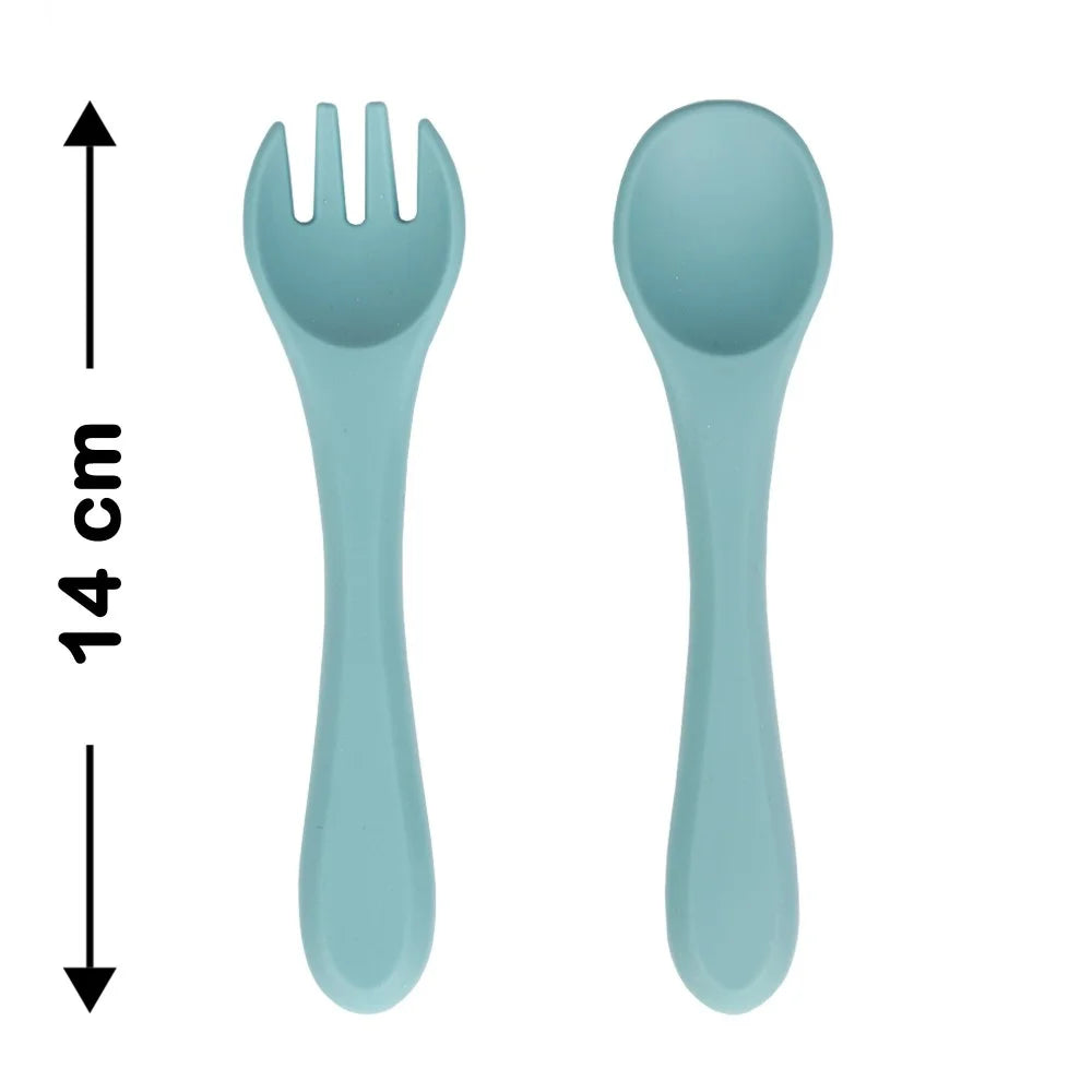 Silikonski pribor za jelo (kašika i viljuška) idealne su veličine za male dječije ruke i podstiču samostalno hranjenje od najranijeg uzrasta.