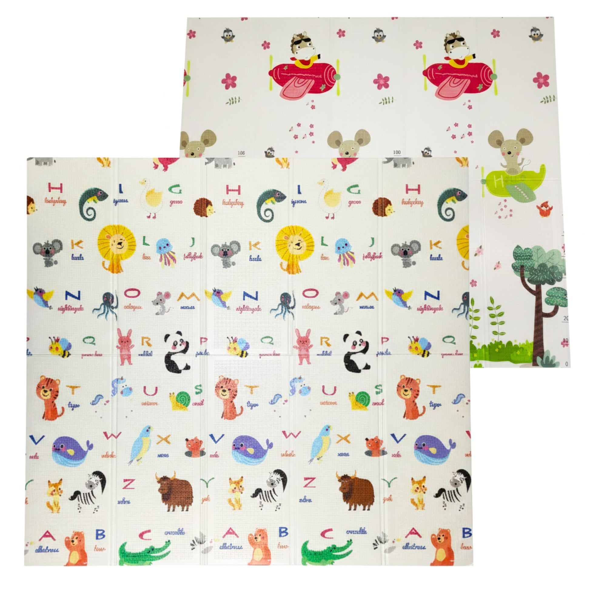 Sklopiva podloga za igru (180 × 200 × 1 cm) pruža sigurno i udobno mjesto za igru djece.